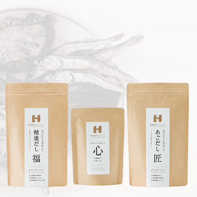 当商品は「ハッピーナチュラル」が香川の和だし専門店に特別生産を依頼し実現した、オリジナルの無添加出汁パックです。